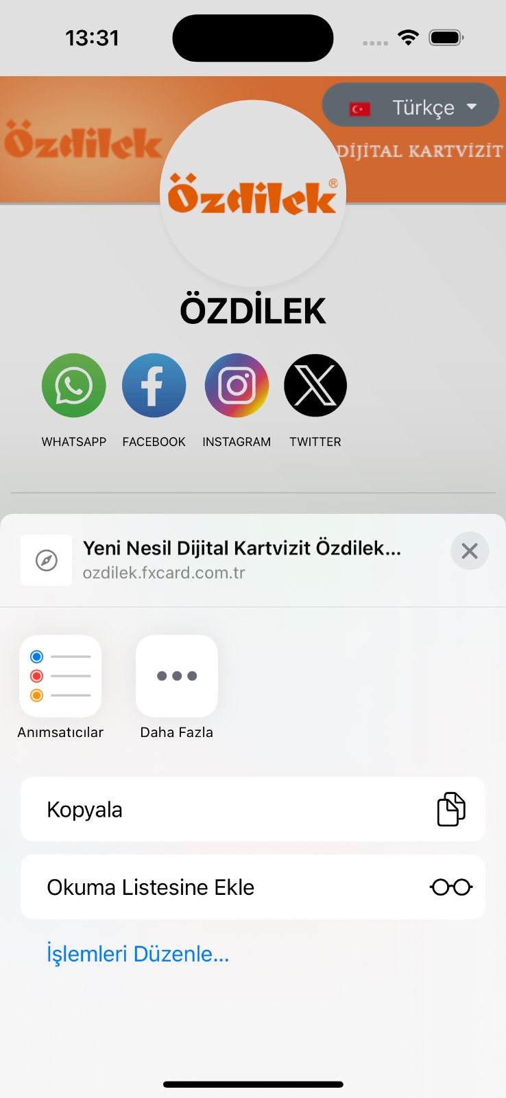 Özdilek Card Dijital Kartvizit ile herhangi bir uygulama indirmeye gerek yok; kartvizitinizi hızlıca ve sorunsuzca paylaşın.